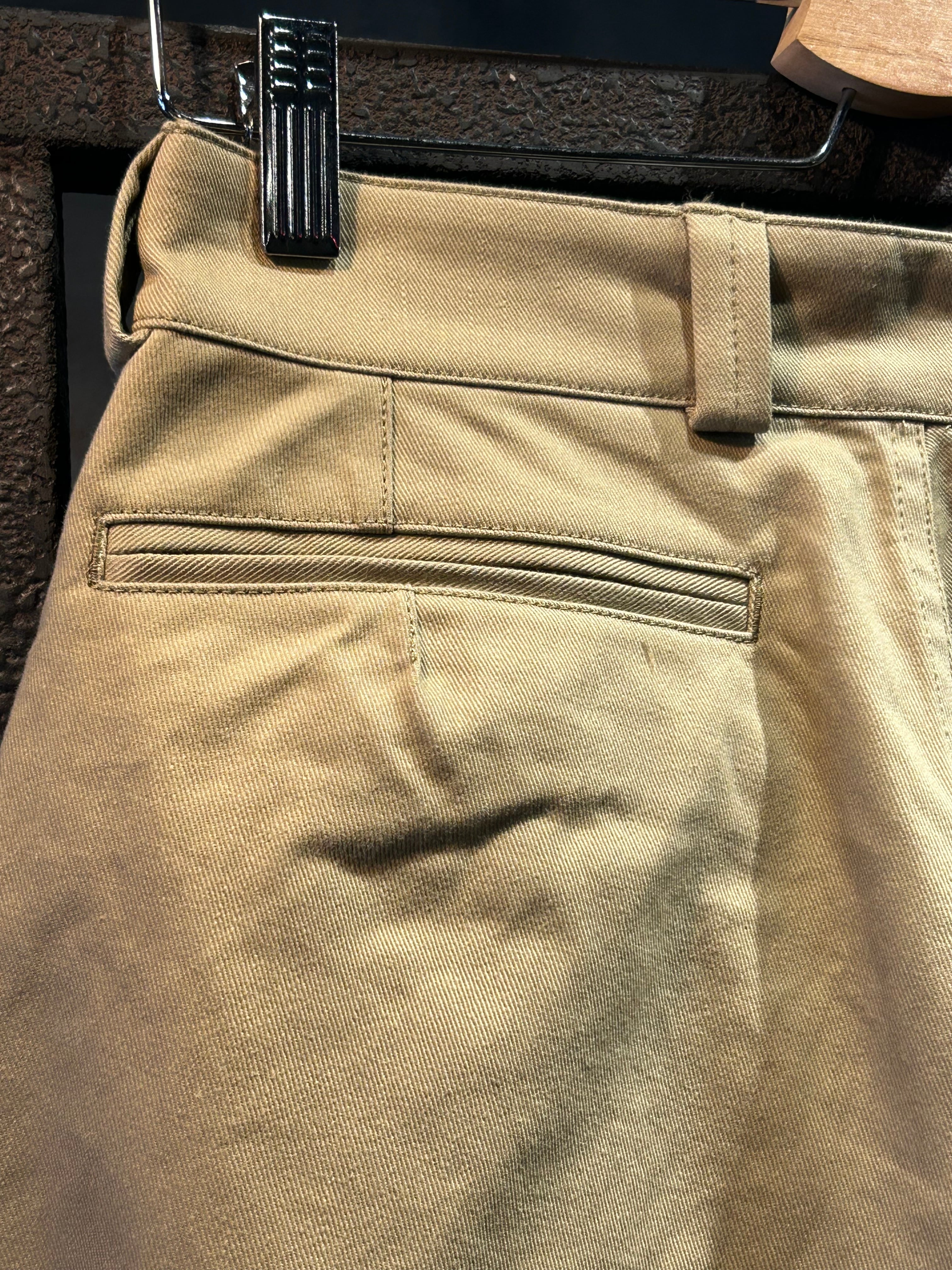 M52チノは、ミリタリーウェアの中でも稀有な存在。美しいパターン設計と、無駄を削ぎ落とした機能美が見事に融合。わずかにテーパードの効いた太めのシルエットが、穿く者に大人の余裕を感じさせ、時代に左右されないクラシックな佇まいを演出します。使用しているのは、適度なハリと柔らかさを兼ね備えた上質なチノクロスと10ozデニム。穿きこむごとに馴染み、経年変化を楽しめるのも、ヴィンテージを継ぐ一着ならではの魅力。