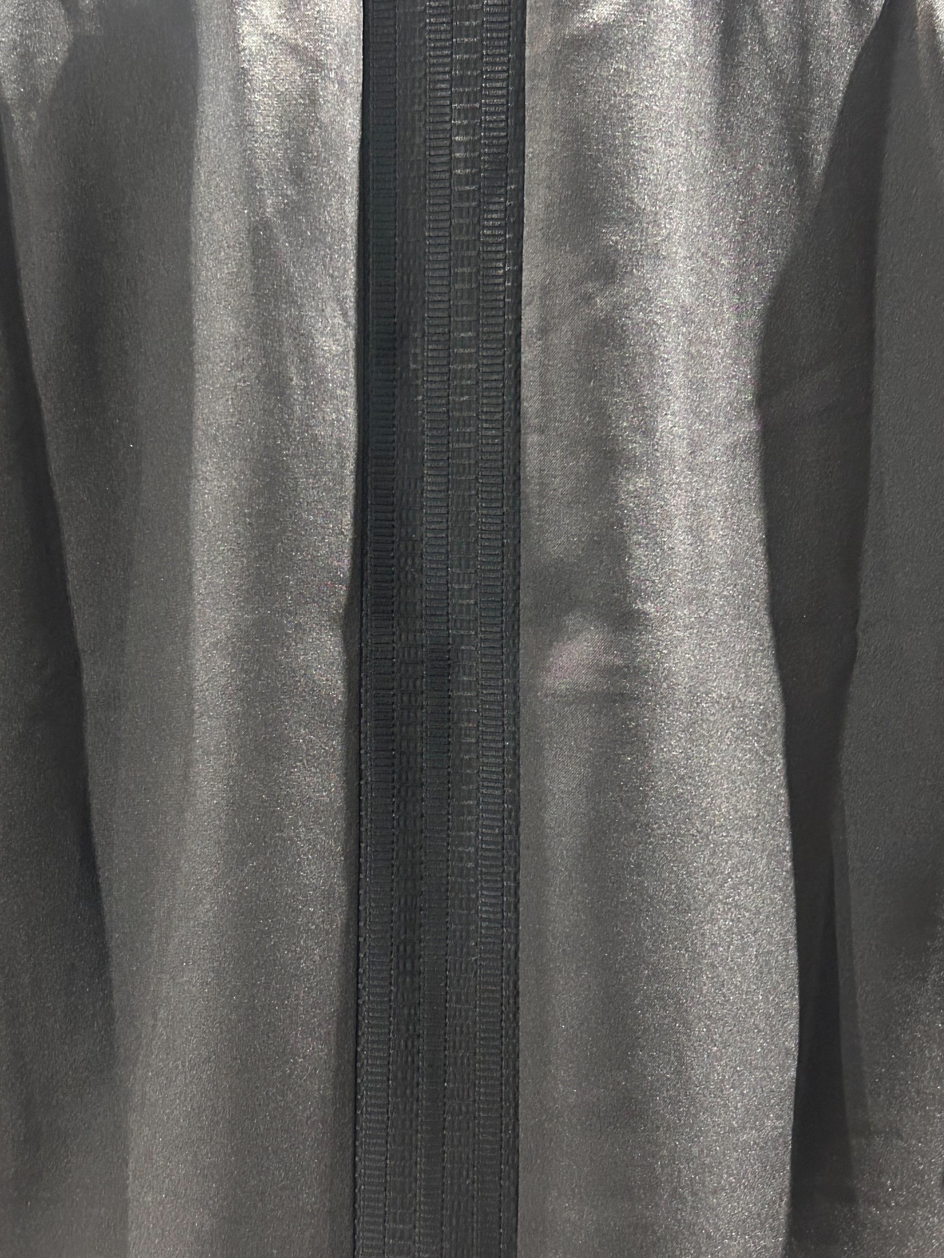 従来プリーツや刺繍で表現される縦飾りをポリウレタンの入ったストレッチ製の効いた飾り生地を使用しており従来のポリエステルのシャツに比べ伸び縮みがあるので気心地の良い1着に仕上げております。
