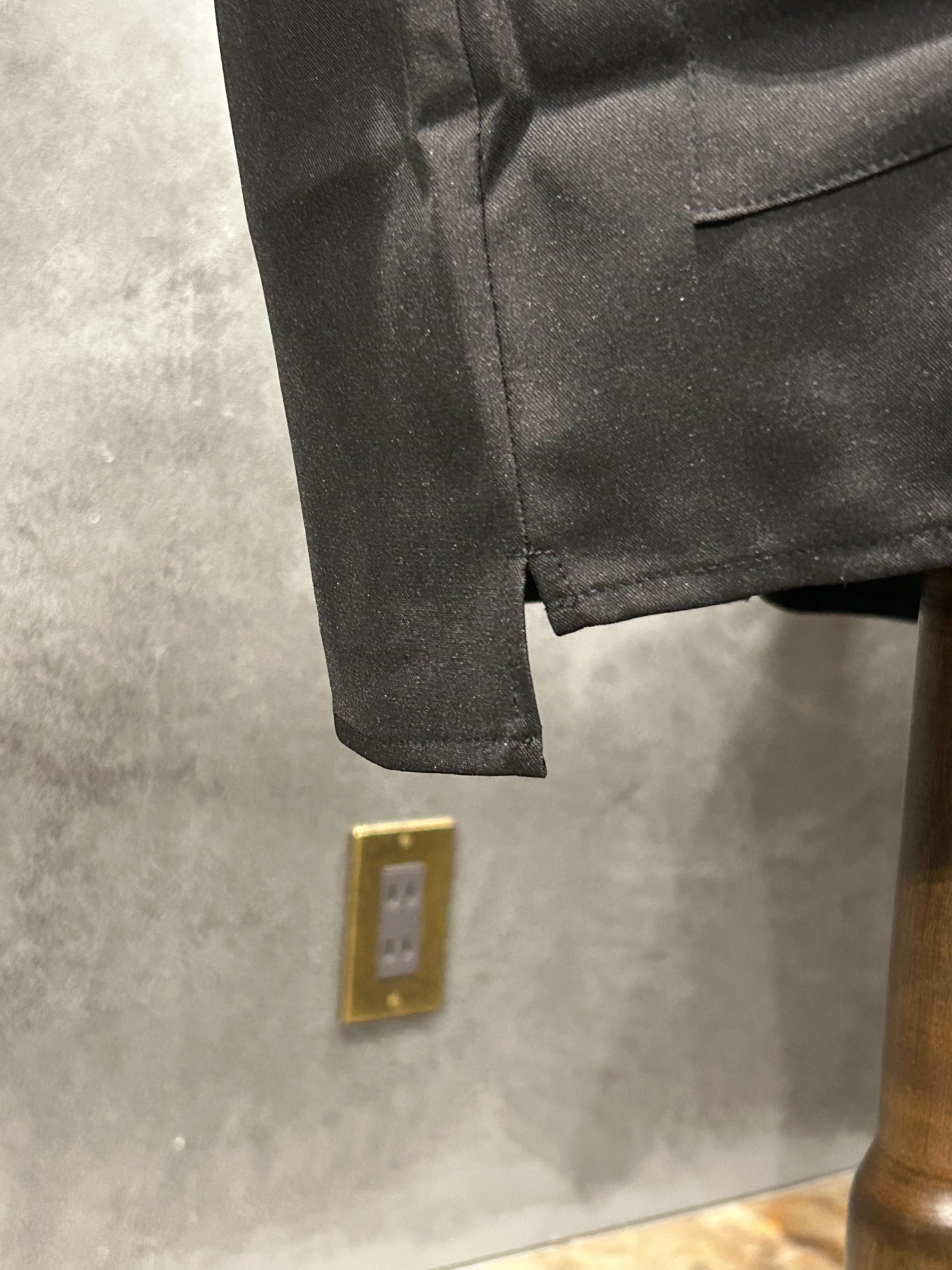 シルエットはやや緩めのボックスシルエットになっておりスラックスやワークパンツにも幅開くコーディネートしていただける1着になっております。